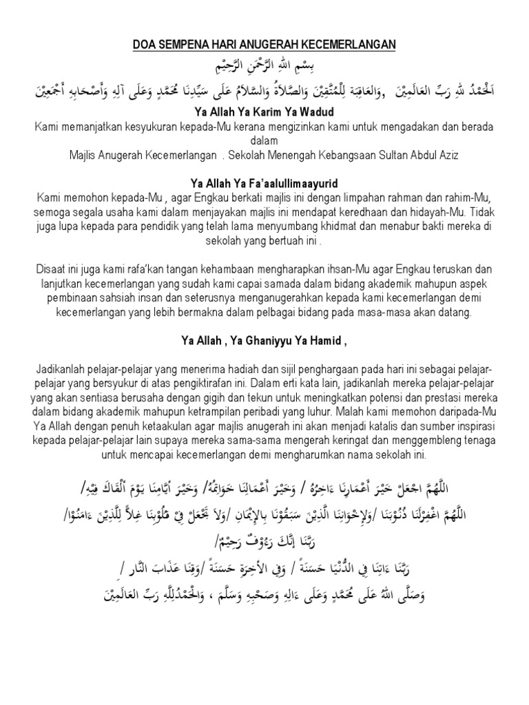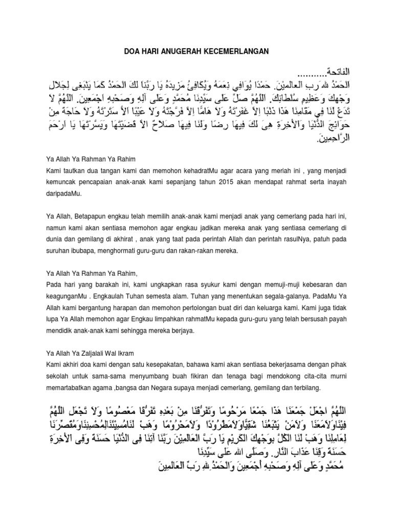 Doa Sempena Hari Anugerah Kecemerlangan Pdf